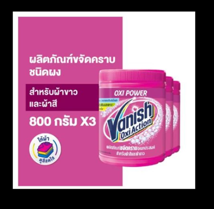 Vanish [แพ็ค3] แวนิช ผลิตภัณฑ์ขจัดคราบอเนกประสงค์ สำหรับผ้าขาวและผ้าสี ขนาด 800 กรัม