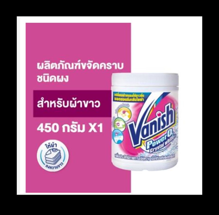 แวนิช ผลิตภัณฑ์ขจัดคราบ สำหรับผ้าขาวผลิตภัณฑ์ขจัดคราบอเนกประสงค์ขจัดคราบสะอาด เบาแรงซัก ทั้งคราบสกปรกที่มองเห็นและคราบที่เล็กมากจนแทบมองไม่เห็นโดยไม่ทำให้ผ้าเหลือง